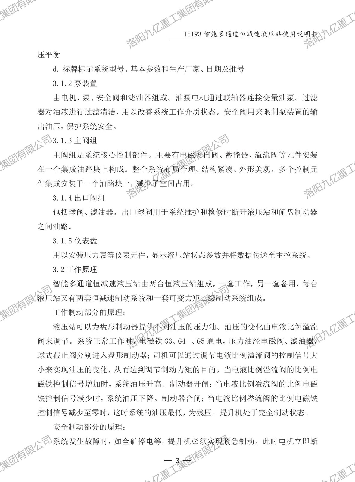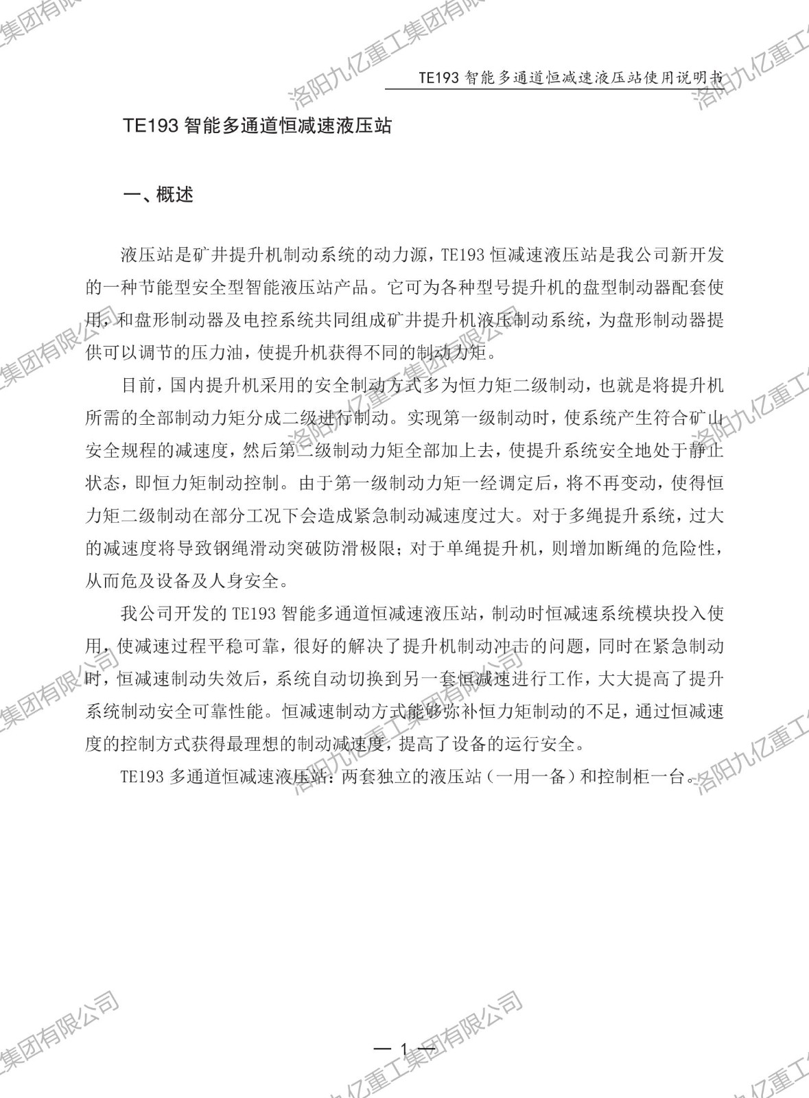 智能多通道恒減速液壓站TE193使用說明書